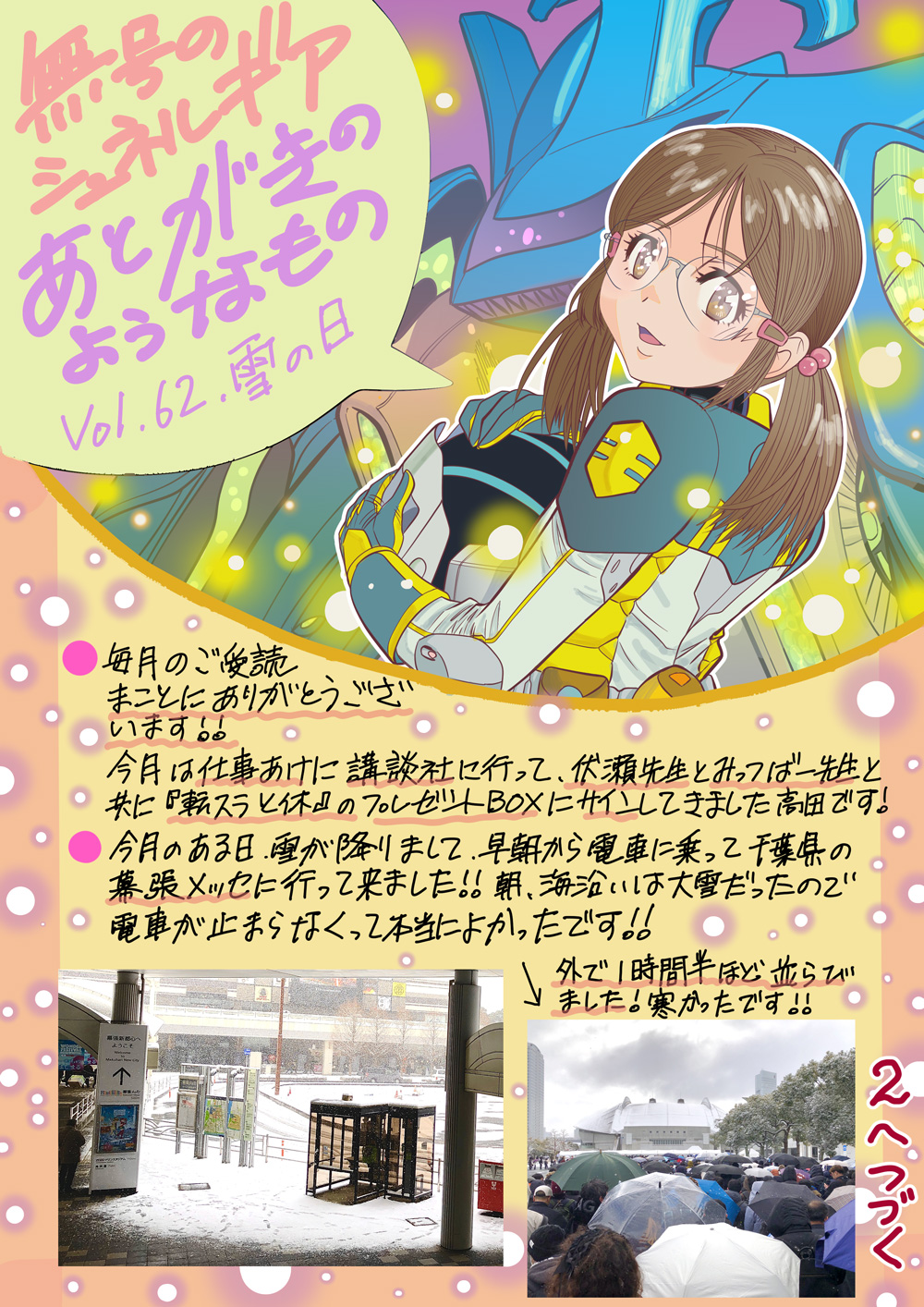 『無号のシュネルギア』第62話の高田先生のあとがきを公開!!!